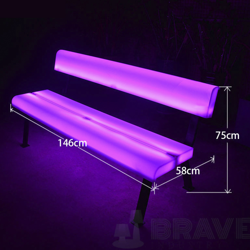 रंग:16 अलग-अलग आरजीबी रंगों के साथ हमारा एलईडी प्लास्टिक बेंच फर्नीचर अंधेरी रात में सुंदर है, झोंके को आकर्षित करना और माहौल बनाना आसान है।