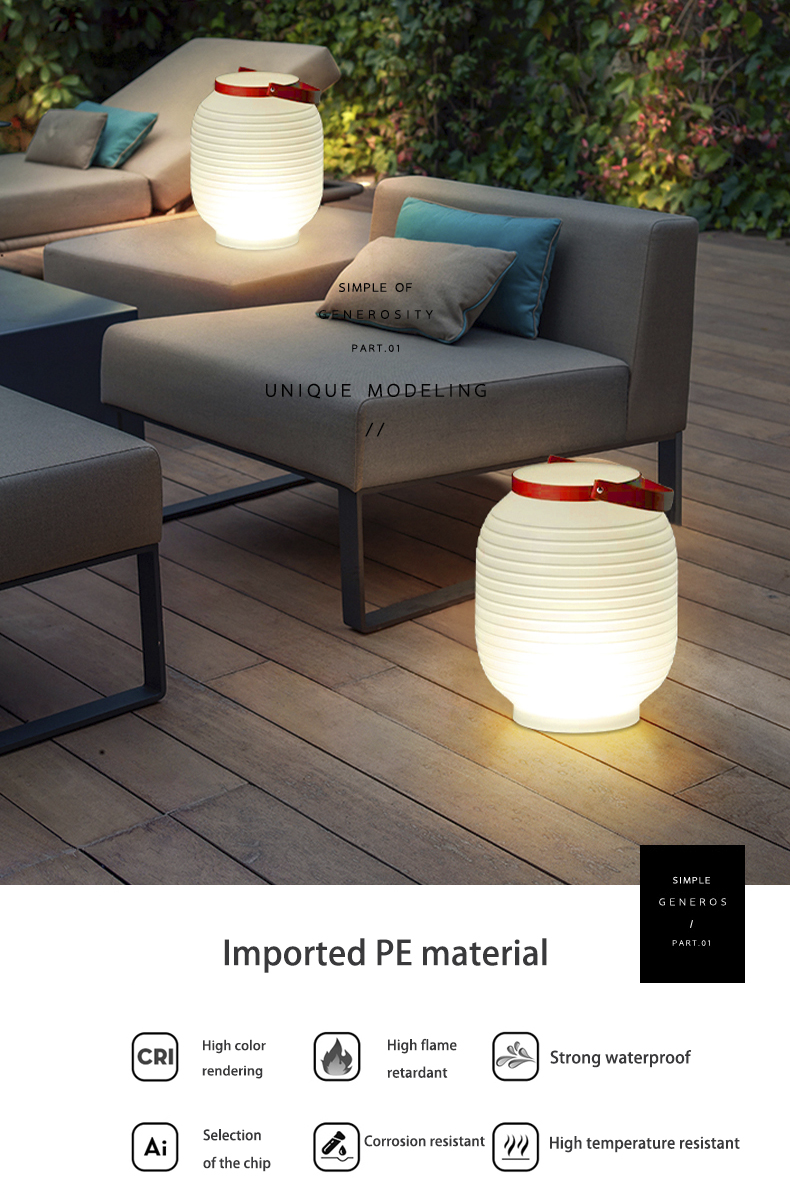 Bahan import :Lantern LED Taman Outdoor iki digawe saka bahan PE, tahan tekanan, ora gampang pecah, tabir surya awet