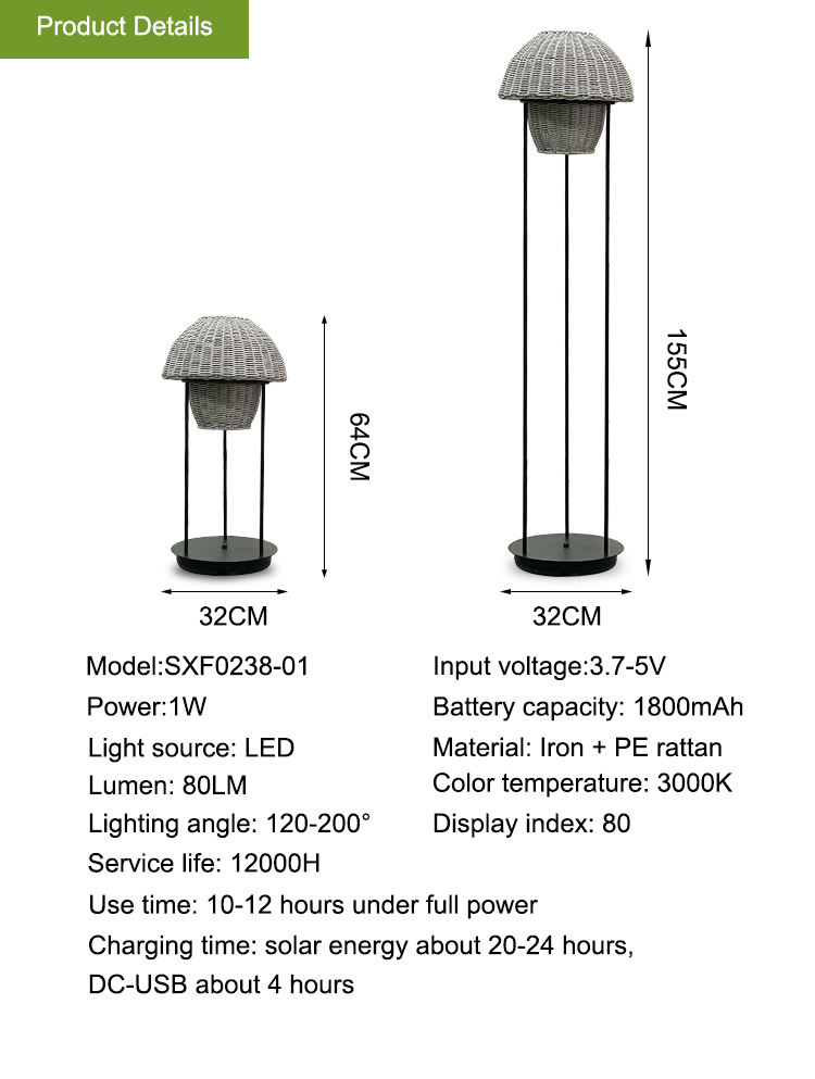 ភ្លើងបំភ្លឺបុរាណ៖មានអំពូល LED ពណ៌សក្តៅ ដែលដាក់នៅផ្នែកខាងលើនៃចង្កៀងដែលចាំងចេញតាមរយៈព័ត៌មានលម្អិតនៃរចនាសម្ព័នផ្តៅ បង្កើតជាលំនាំស្រមោលដ៏អស្ចារ្យ។បន្ទះស្រូបពន្លឺព្រះអាទិត្យរួមបញ្ចូលគ្នាពេញមួយថ្ងៃ ដោយប្រើថាមពលព្រះអាទិត្យ ហើយឧបករណ៍ចាប់សញ្ញាពន្លឺតិចតួចដ៏ឆ្លាតវៃបំភ្លឺពន្លឺដោយស្វ័យប្រវត្តិនៅពេលព្រលប់ ដើម្បីបន្ថែមពន្លឺដល់សាច់អាំងពេលល្ងាច និងរដូវក្តៅរបស់អ្នក!