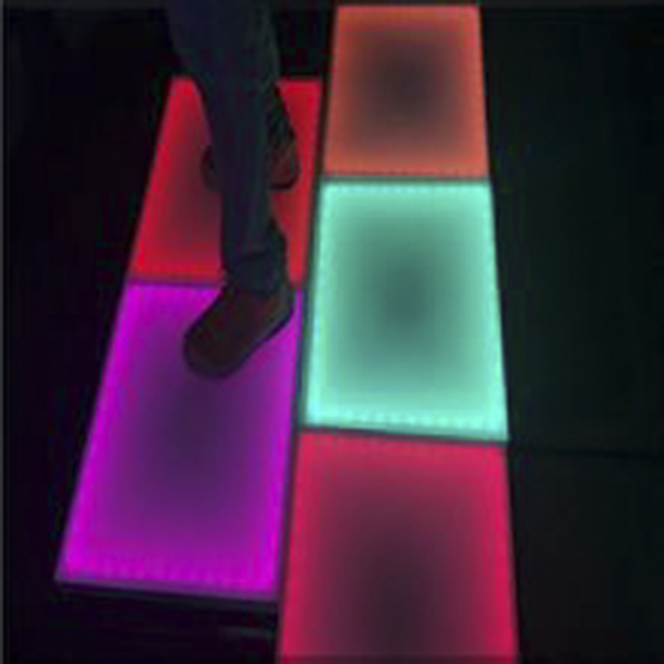 Ndani ya RGB LEDS, rangi 16 hubadilika kwa kijijini na kugusa, wakati wa kugusa sakafu, mabadiliko ya rangi ya LED yatabadilika.Unaweza kubinafsisha mitindo tofauti ya jukwaa kulingana na mada tofauti ili kuwezesha muunganisho wa mitindo ya jukwaa.