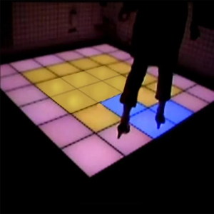 Sakafu kawaida hujengwa kwa seli za mraba zilizo na upande.Pande na sehemu za chini zimefanywa kuakisi na sehemu ya juu hutawanya mwanga ili kutoa rangi sawa.Sakafu inaweza kuonyesha mifumo tofauti na flash chini ya udhibiti wa kompyuta.