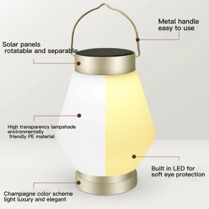 Tafadhali jisikie huru kuchagua taa zetu za nje zinazobebeka.Utafurahia faida nyingi kama vile kijani, rahisi kubeba, matumizi ya kazi nyingi, matumizi ya muda mrefu, ya kudumu na ya kuaminika.Iwe ni kwa ajili ya tukio la nje au suluhisho la mwanga kwa yadi yako ya nyumbani.Tutakupa bidhaa za utendaji wa juu na ubora wa juu.Tafadhali wasiliana nasi.Hebu tufanye kazi pamoja ili kuunda mazingira ya kirafiki zaidi na ya starehetaa za njemazingira.