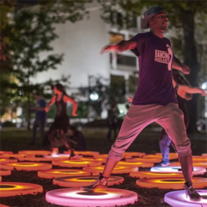 גלאָוינג שטאָק טיילז זענען אַ ספּעציעל פלאָרינג מאַטעריאַל מיט RGB לעדס וויקקס געשטעלט ין, וואָס אַרויסלאָזן ליכט צו שאַפֿן אַ גאַזירטע ווירקונג אין טונקל ליכט טנאָים.אין אַלגעמיין, עס זענען רעגולער געפירט ליכט יפעקץ, ווי געזונט ווי RGB 16 מינים פון לייטינג יפעקץ.