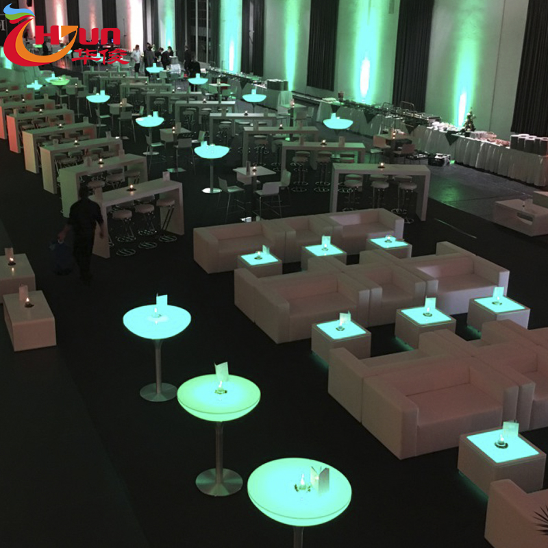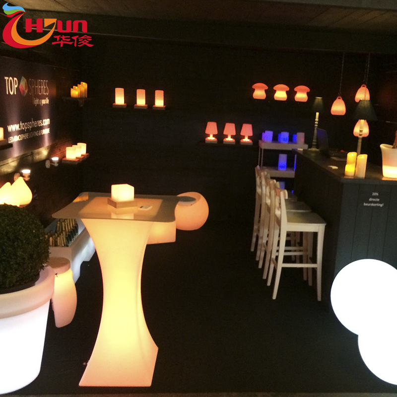Factory:Huajun Co. LTD is a regular LED bar table and chair factory.The factory is in Guangdong, China.Therefore, our LED furniture is much cheaper than similar products in other countries.We can ship the goods directly from the factory as long as you place an order.