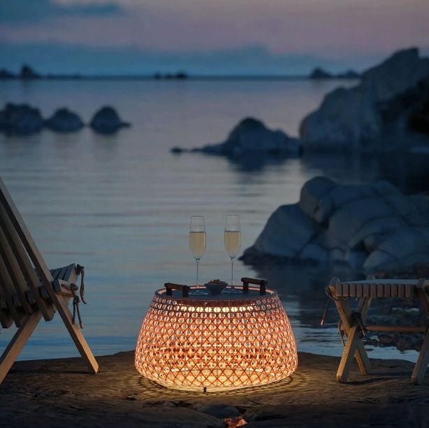 Outdoor IP65 Solar Powered LED Lamp Hand Woven Lawn Coffee Table with Garden Style Atmosphere Waterproof Balcony Lighting