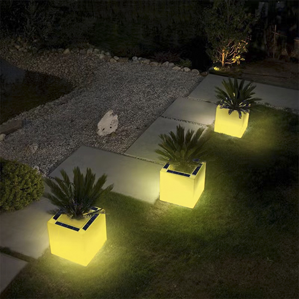 Lighting color change: Solar planter provides dimming mode, with warm white and RGB color change cycle. The remote control can select and change 16 different colors of lights.