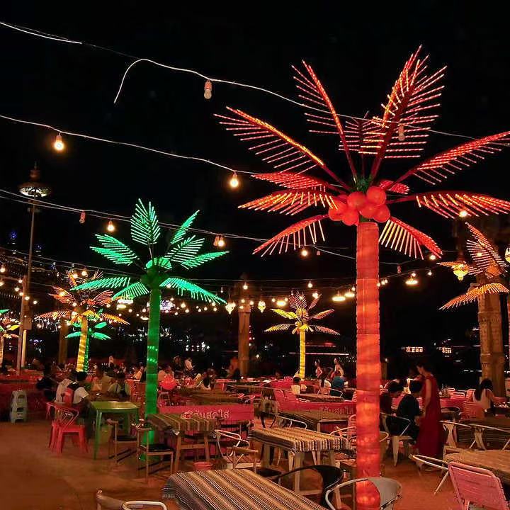 B:Choose from classic green palms or vibrant color-changing designs. Customize styles and colors to match your business theme—perfect for tropical restaurants, busy shopping streets, or theme parks. Built to enhance any commercial outdoor space with weather-resistant durability.